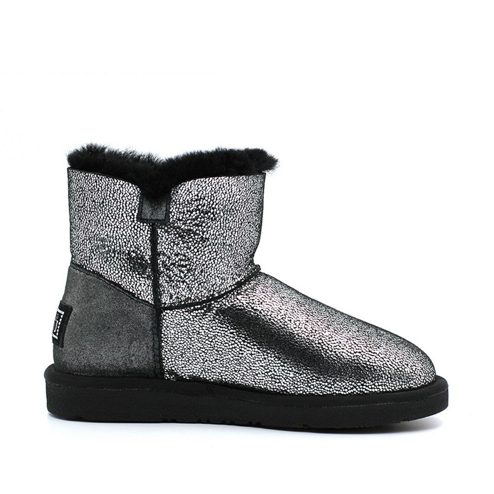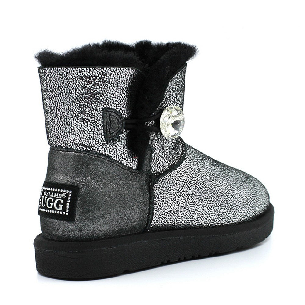 Ozlamb UGG side button ankle boots are a must have favourite. Made using genuine Australian Sheep Skin. Internally genuine Australian Sheeps Wool will keep your feet cosy . This classic little favourite with side button feature offers easy access and gives you the optional room for added room around the ankle area. These fun ankle boots are supported with an EVA Sole which is light weight and comfortable for use around the home or stepping outdoors. A best seller for the whole family.